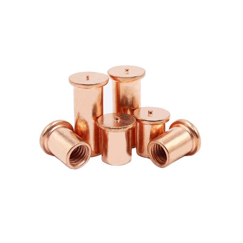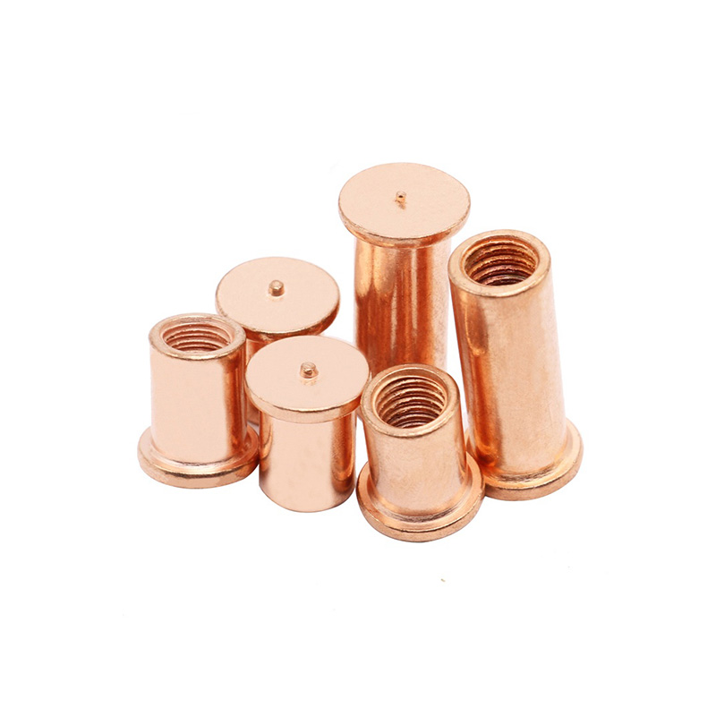 高強度の内部糸溶接スタッドは、通常、5000および6000シリーズのアルミニウム合金で作られています。アルミニウムは、保護を提供する天然の密な酸化物膜を空気中に形成し、軽量、優れた強度と重量の比と優れた錆耐性をもたらします。アルミニウムの優れた熱伝導率と低溶融点により、スタッドのコンデンサ排出溶接が可能になります。これらのスタッドは、軽量、耐食性、高強度のつながりを必要とする環境で広く使用されています。